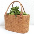 どんなお洋服にも合わせやすいアタバッグですが なかでもこちらのバッグはシンプルでコーディネート力抜群です! 丸い手提げ型の本体に、しっかりと編みこんだ持ち手をつけて ナチュラルで上品なバッグにしあげました。 アタのあめ色と爽やかなグリーンの内布がぴったりマッチして素敵! 内布は巾着状になっていますので、中の荷物が見えません。 年代を問わず、素敵にお使いいただける定番タイプのバッグですから 初めてのアタバッグや、プレゼントにも自信を持ってオススメします! |