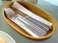 ごく浅いフチをつけた、プレーンな平かご皿です。 マットやミニトレー感覚でもお使いいただける便利なデザインなんですよ♪ カトラリー類のトレーにもぴったりですし コーヒーカップとおやつを載せればカフェマット風にも使えます。 テーブルの上になんとなく置いてある お箸立てや卓上調味料を まとめてスッキリさせるトレーにもぴったりです! この1枚があるだけで、キッチンやテーブルがぐっと素敵に♪ 店長オススメの便利なお品です。 |
